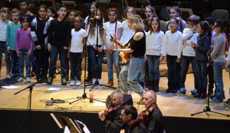Les MJC ont construit un concert autour de la chanteuse lyonnaise Buridane, une chorale de 60 enfants des Vendredi Aprèm’, des musiciens de musique actuelle et de musique classique. Tous ensemble se produisant sur la scène de l’Auditorium de Lyon. Rien que ça.Sept écoles ont participé à l’aventure : Germaine-Tillion, Alix et Lucie-Aubrac (2e) ; Mazenod et Painlevé (3e) ; Gerson et Fulchiron (5e). Les élèves, du CE1 au CM2, étaient volontaires. « Ils ont eu une dizaine de séances de chant. Buridane ne pouvant pas se démultiplier, trois musiciens choisis par ses soins ont fait travailler les enfants avant de les accompagner sur scène. »