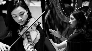 Les sœurs Pannetier, Gwendoline à la harpe et Laetitia au violon et au chant, proposent pour la Fête de la Musique un répertoire varié.