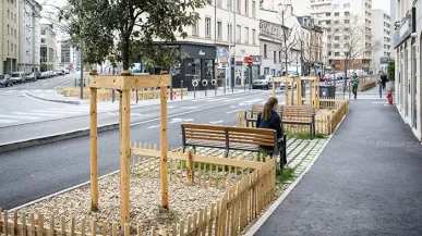 La portion de rue entre le croisement de la rue Garibaldi et celui du boulevard des Tchécoslovaques est désormais végétalisée et apaisée.